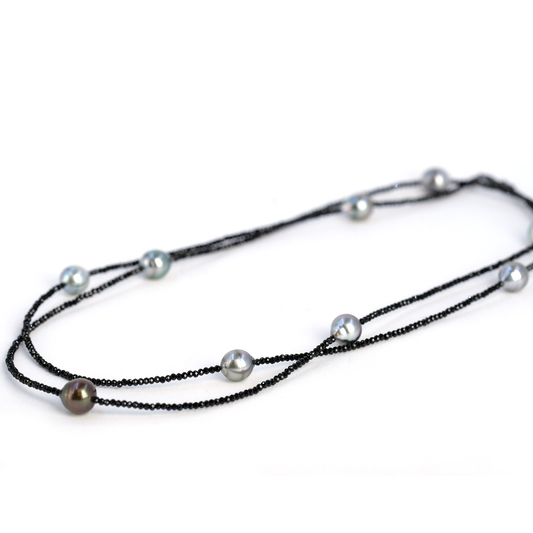 Lang spinel og tahitiperlekæde